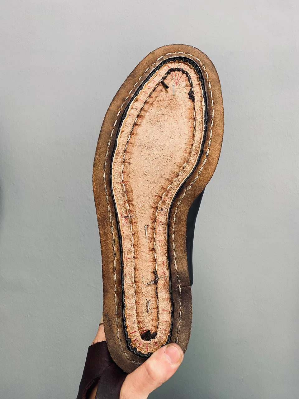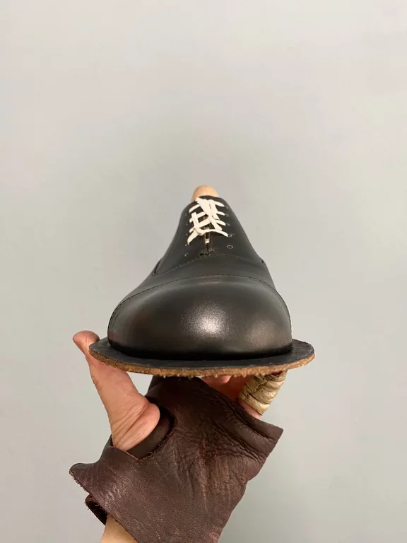 3. Termin: Zwischenanprobe der gezwickten aber noch nicht rahmengenähten Schuhe.